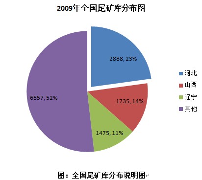 節(jié)能減排“十二五” 規(guī)劃再一次敲響中國對于處理尾礦庫危機形勢的警鐘,國家下政策規(guī)范工業(yè)生產(chǎn)限制排放量和能源消耗量。尾礦庫的處理成為各個礦山企業(yè)的首要解決問題。據(jù)統(tǒng)計,截至2009年 ,中國尾礦庫總量達到12655座,其中占比最多的河北省就有2888座,居全國第一。